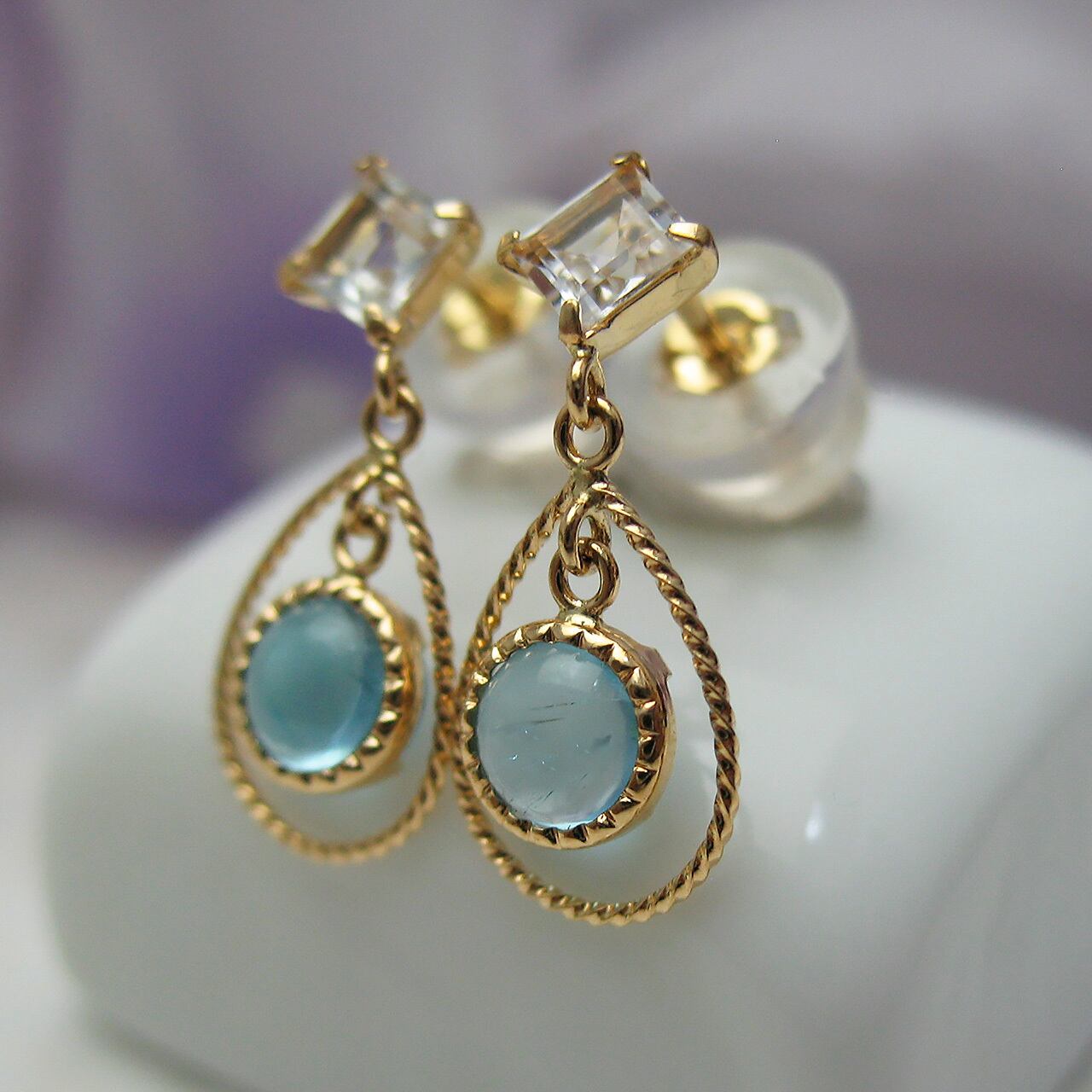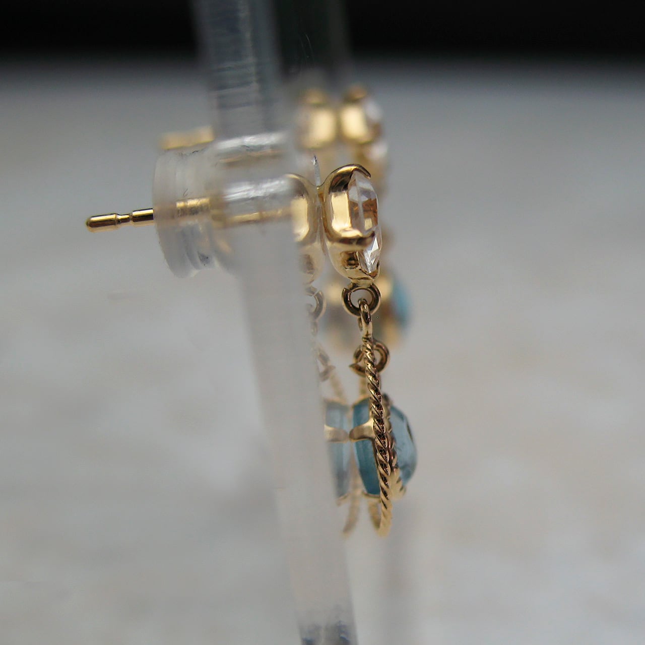 K18カラーストーンピアス ブルートパーズ&ホワイトトパーズ