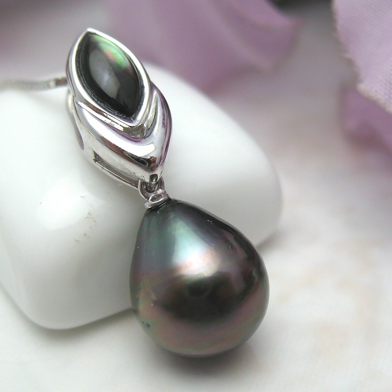少しグリーンからの入った明るめの黒蝶真珠です