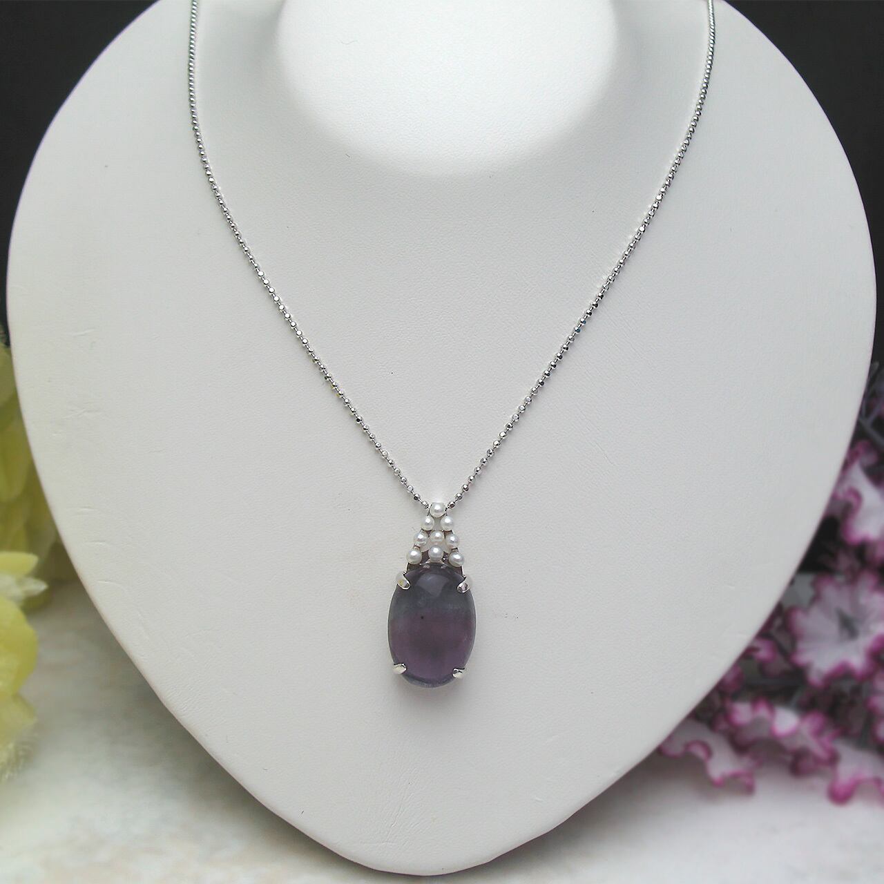 フローライトの神秘的な輝きと、シードパールの上品な光沢が見事に調和し