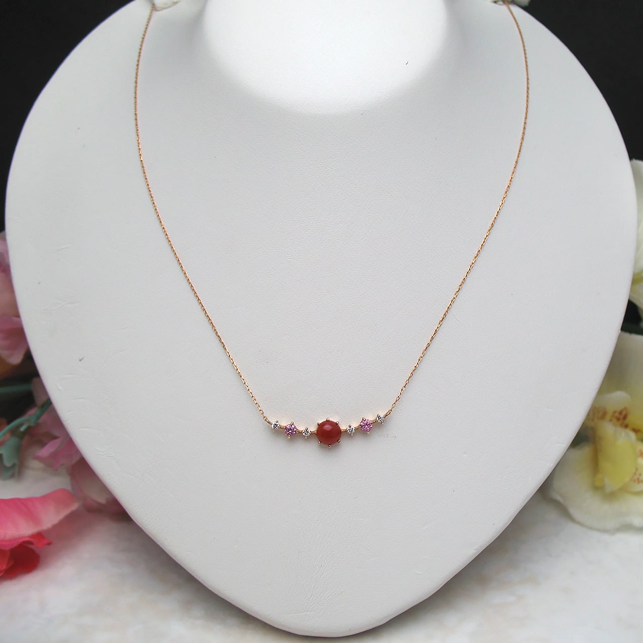 【宝石】血赤珊瑚・ダイヤ<br>ピンクトルマリン
