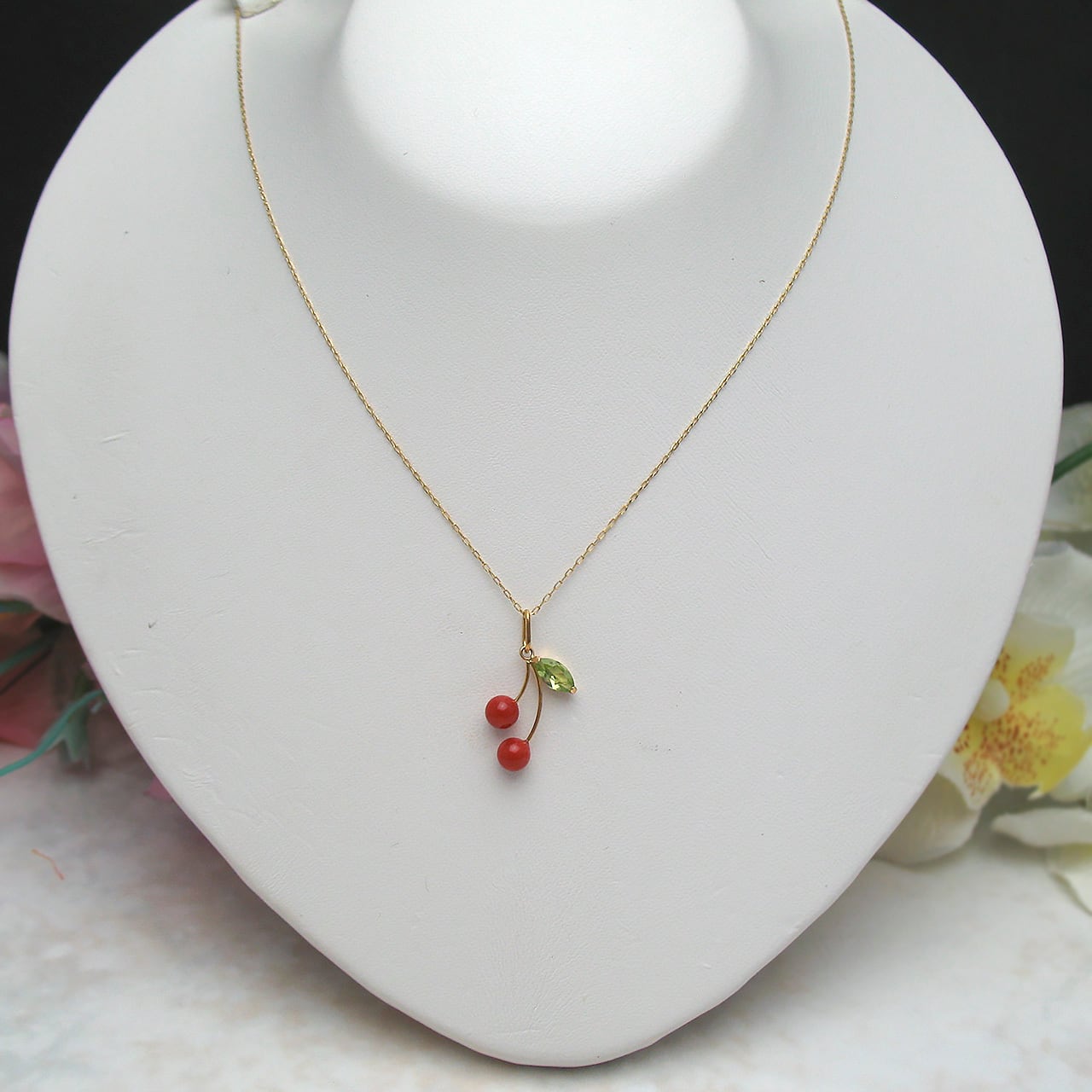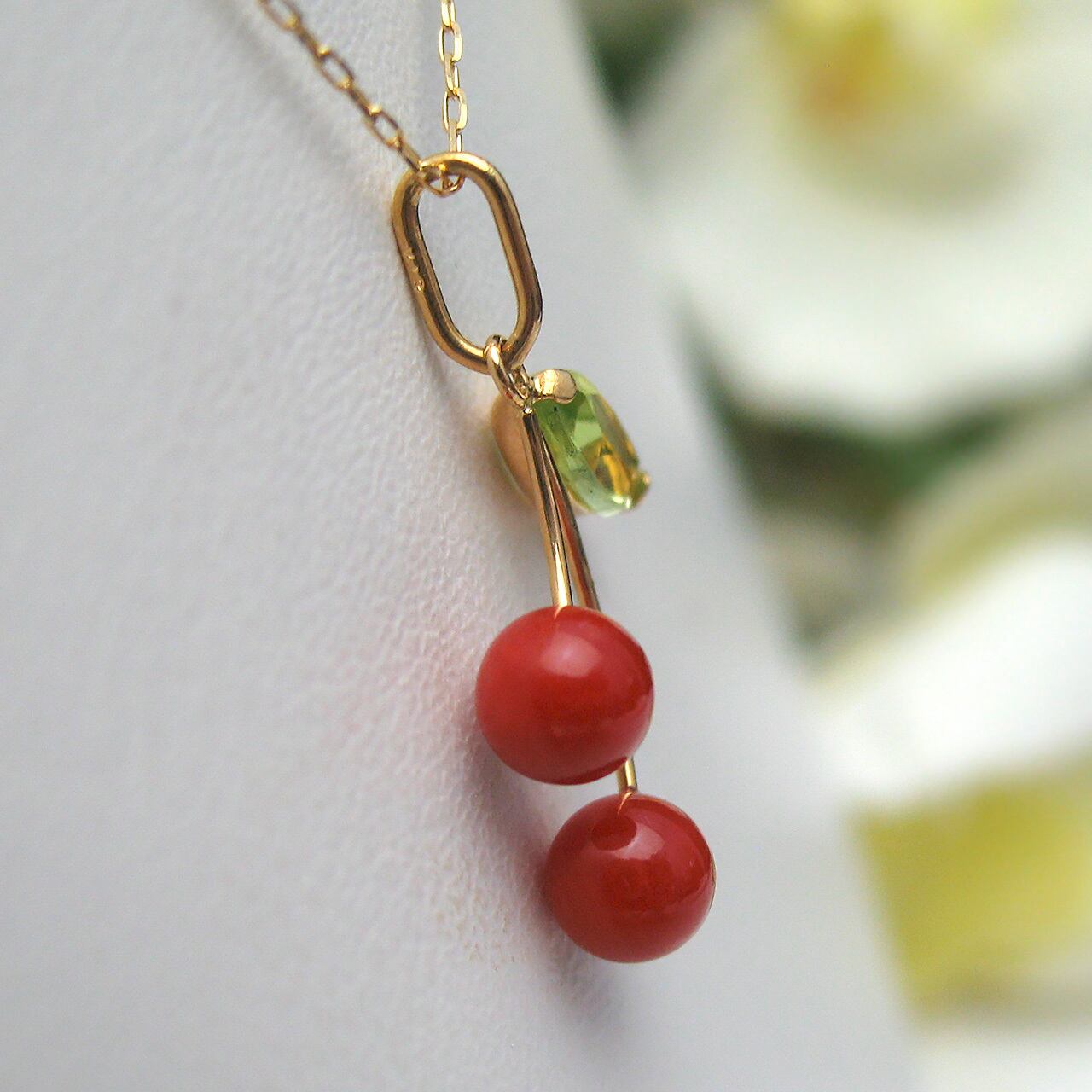 Bijoux fromsea K18朱赤珊瑚さくらんぼペンダントTK-11783