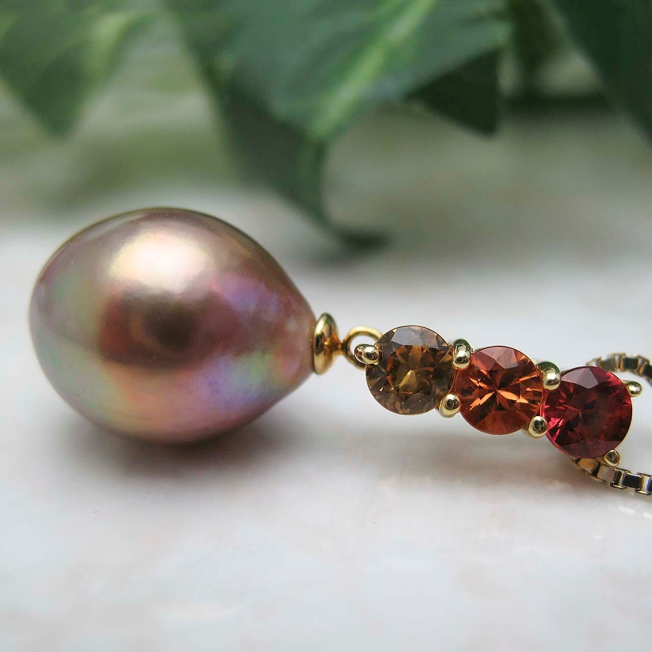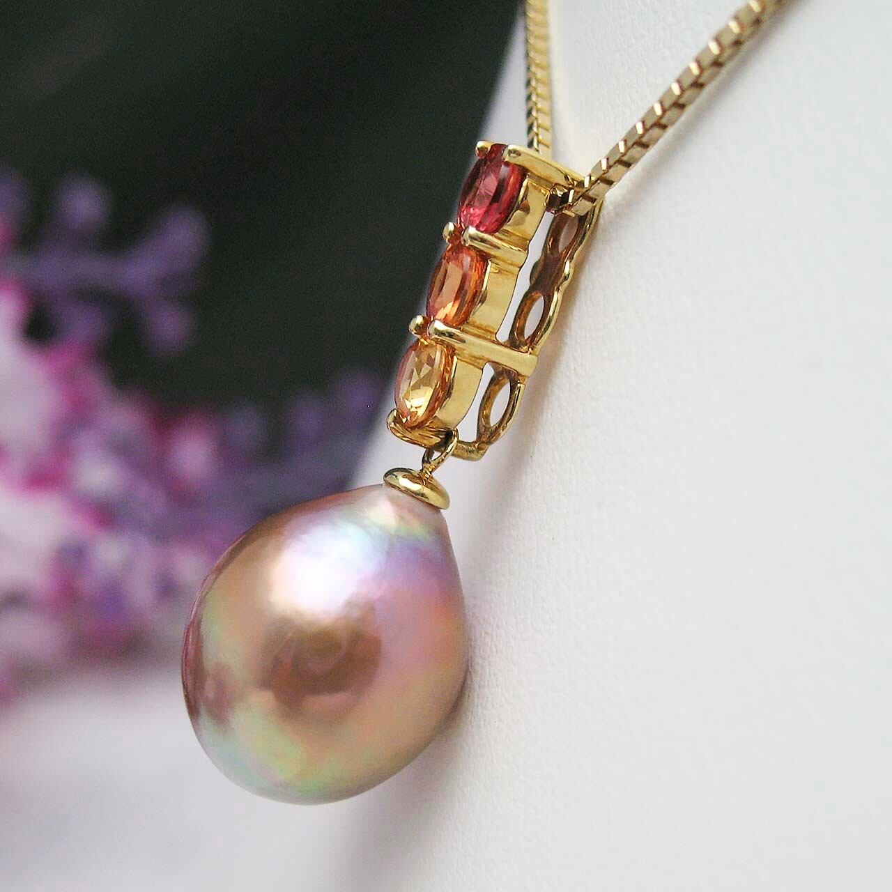 K18有核淡水&サファイアペンダント