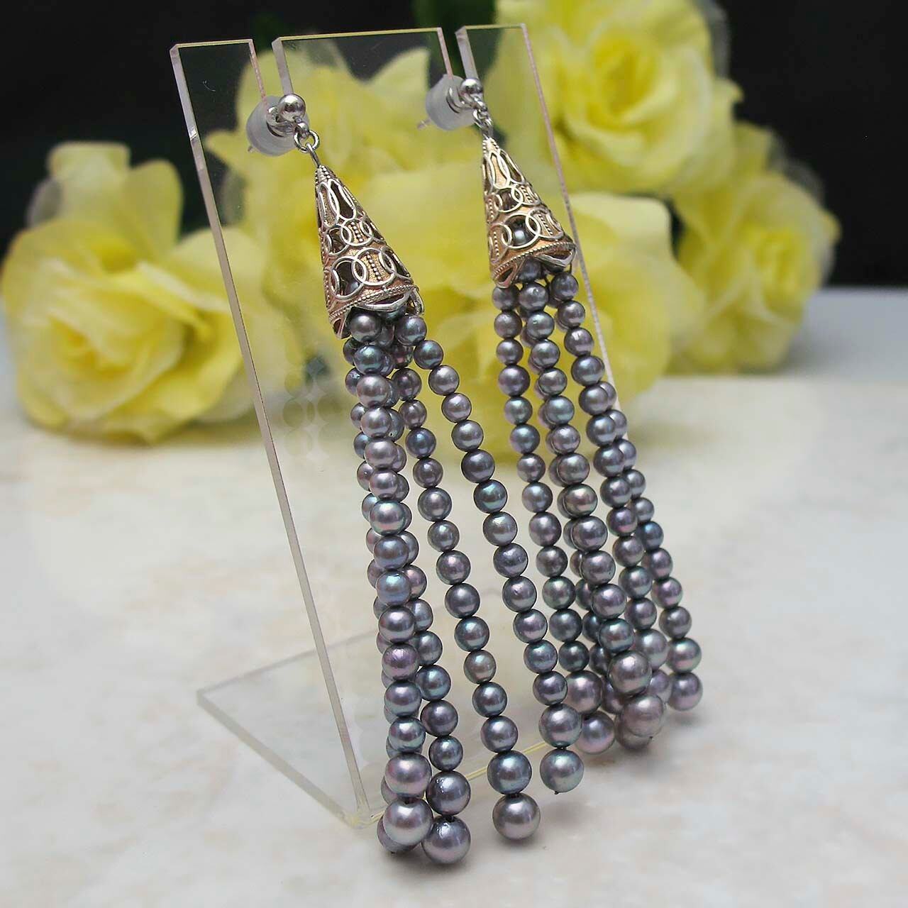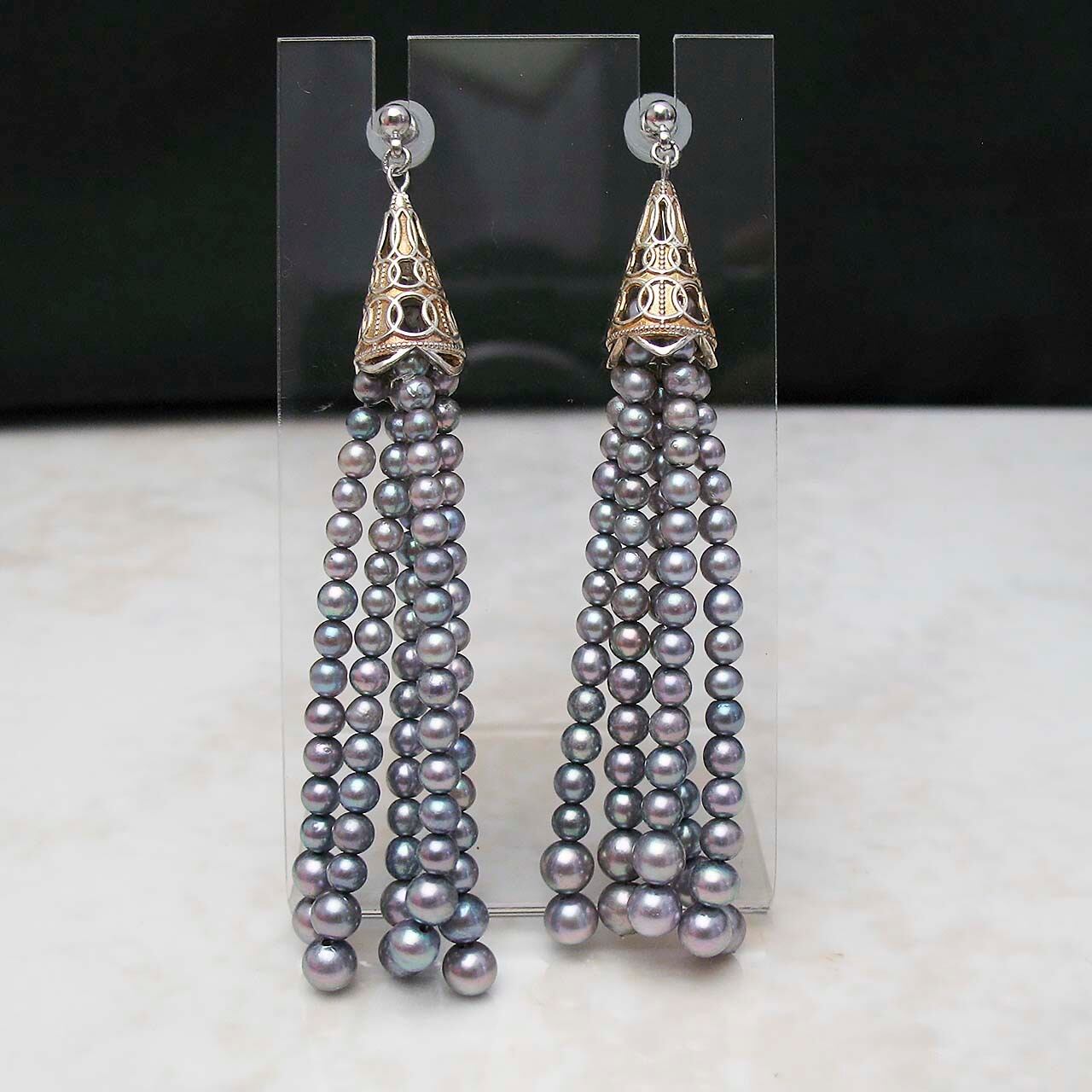 あこやタッセルロングピアスSV オチナイ君キャッチ付き