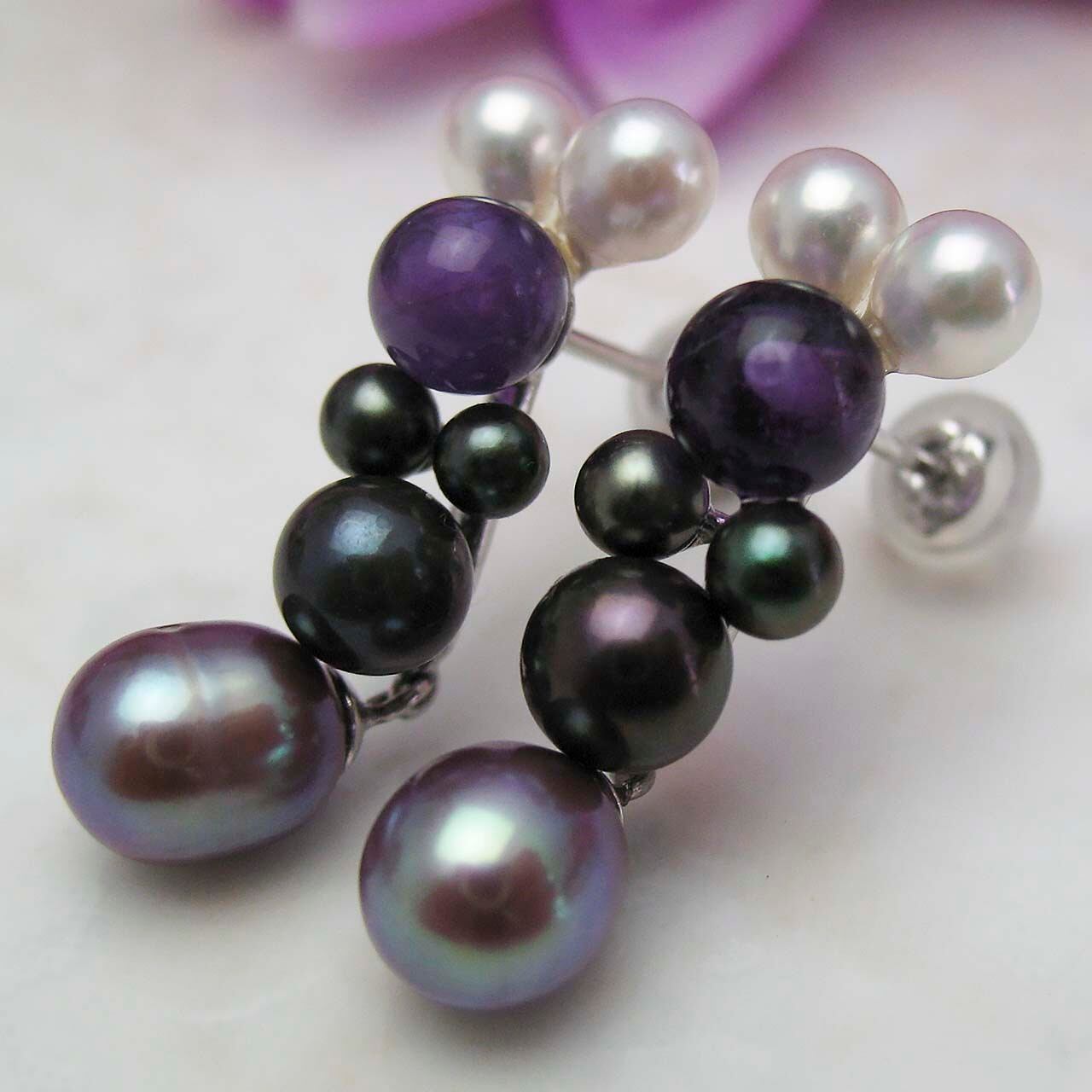 あこや・淡水・アメジスト 紫のミッヒーちゃんピアス