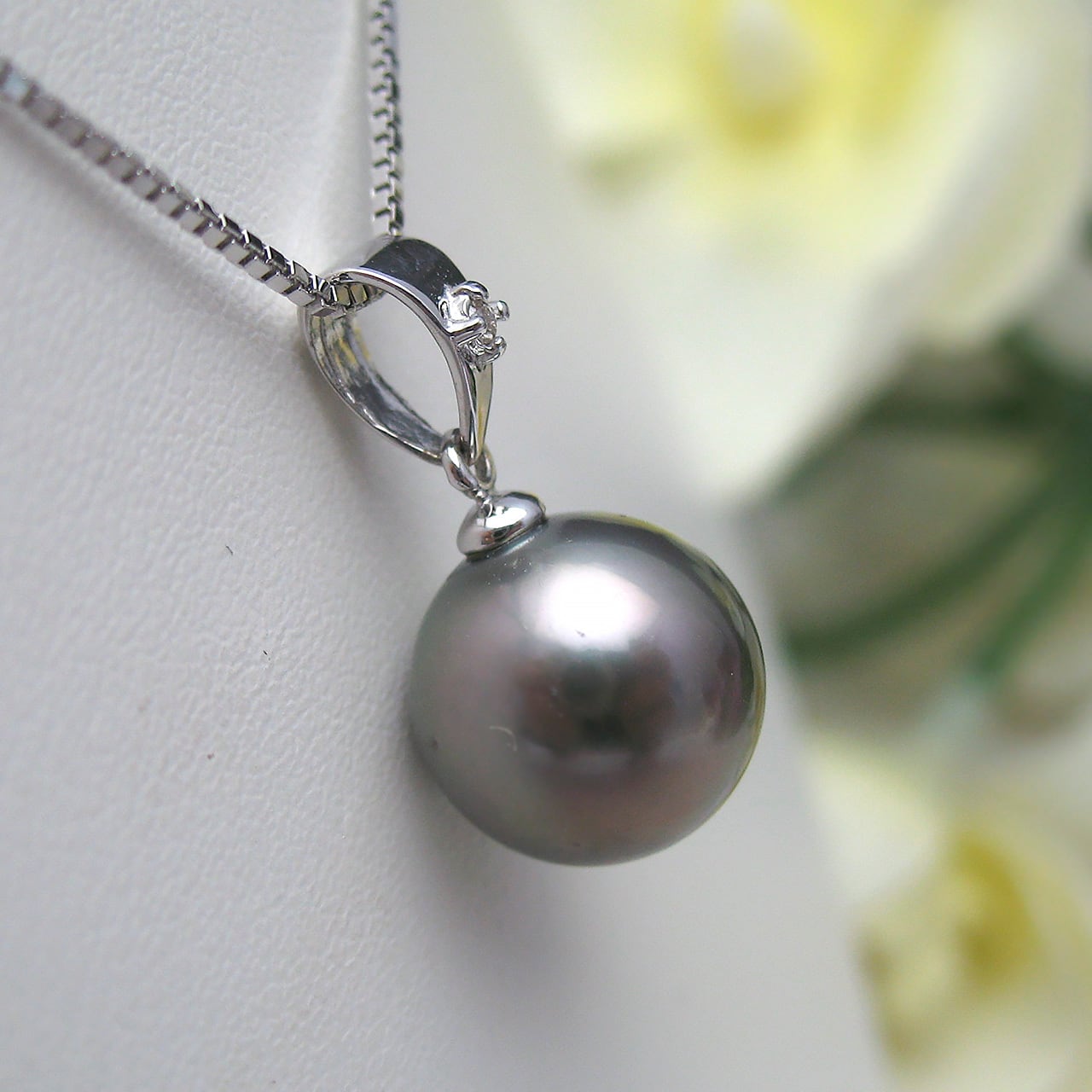 こちらはK18WG黒蝶10ミリペンダントです!美しい黒蝶の真珠が特徴で、深みのある色合いと独特の光沢が魅力的です。