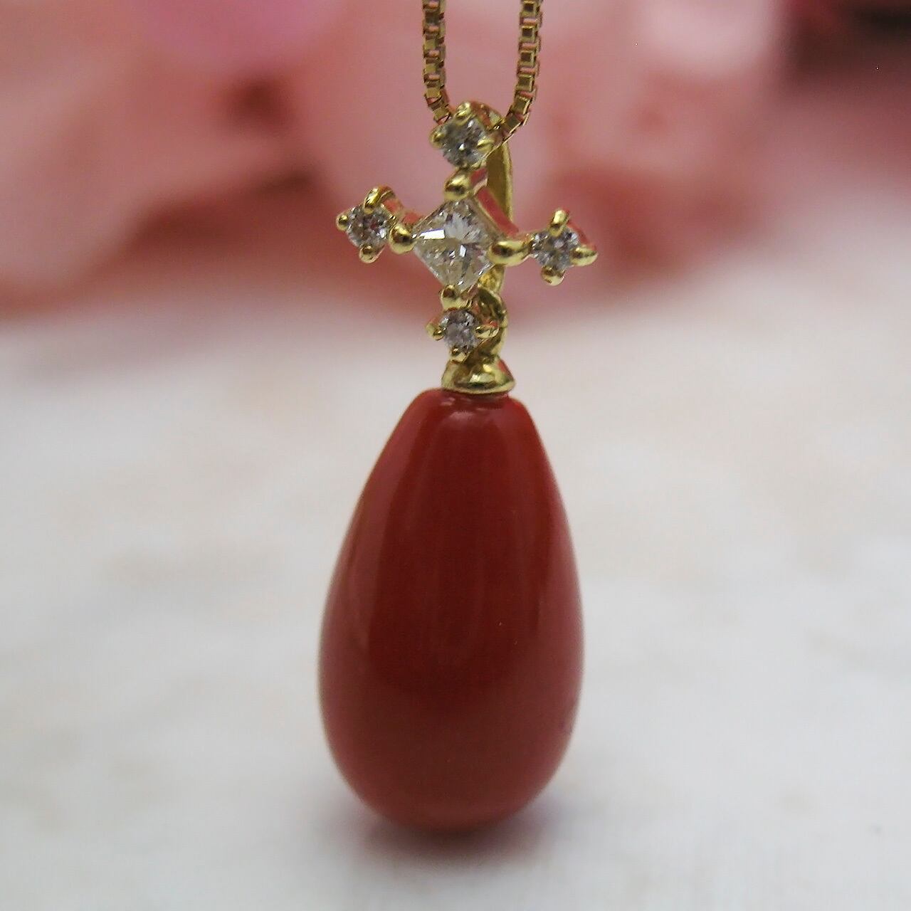 【宝石】血赤珊瑚・ダイヤ