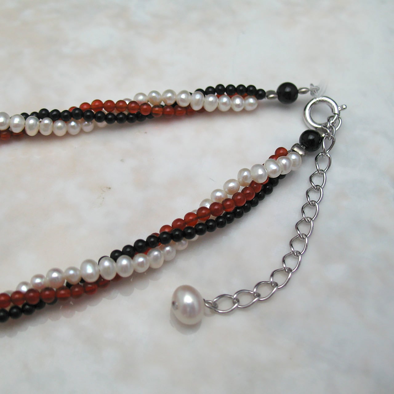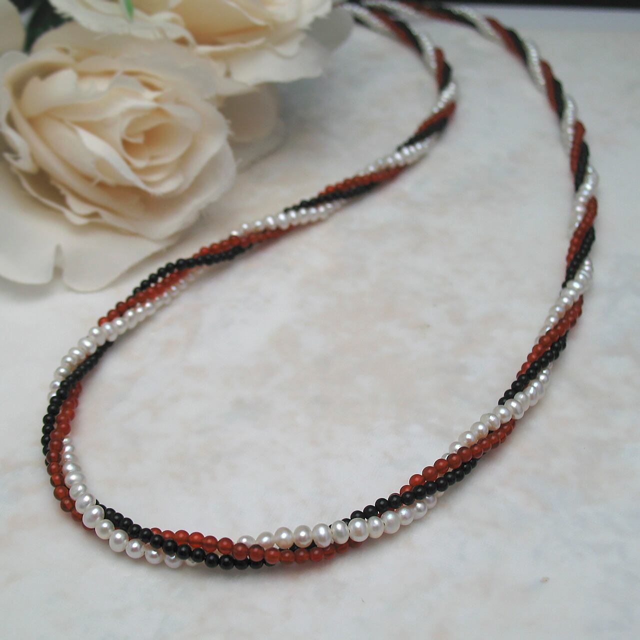 また、淡水真珠とメノウの軽やかな組み合わせにより、着け心地も非常に良好