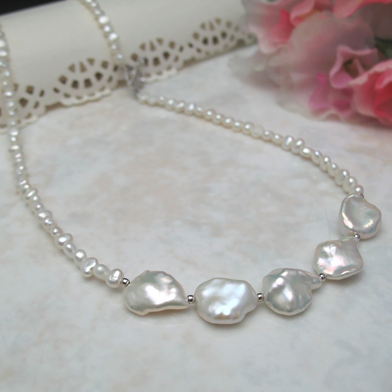 4ミリの淡水真珠に大きなバロックを合わせたネックレスです