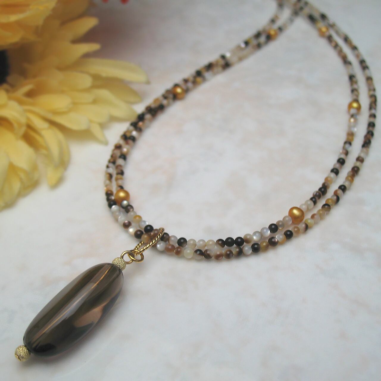 ・スモーキークォーツ・シェル&淡水真珠ネックレス 24-280H